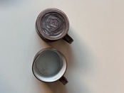 ひとつひとつ手仕事で仕上げており、このカップの個性のひとつとしてボディに手に馴染むイメージでへこみをつけたデザインを施しています。
